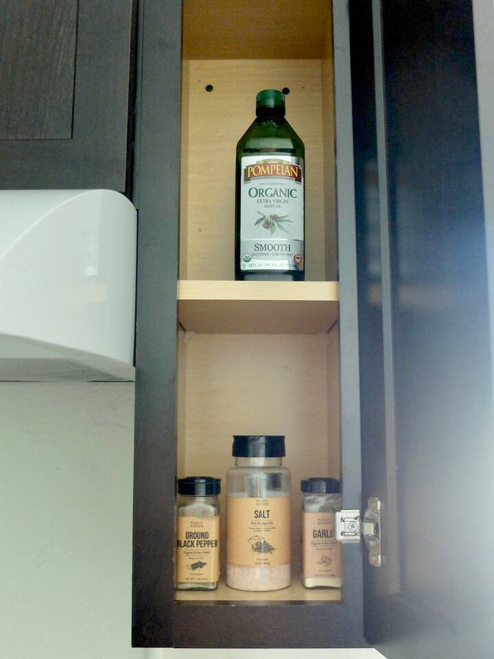 - Cooking basics Pots and pans, oil, salt and pepper