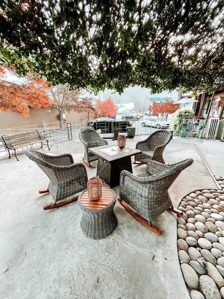 1 hour drive into Yosemite Valley and only steps from the historic downtown strip of our old mining town, Mariposa, this newly remodeled 1938 motel room has everything you need to start your adventures off right! Enjoy the 5- star mattress for an amazing nights sleep, luxurious bathroom with rainfall shower and bidet, and convenient wet bar with microwave, mini fridge, sink, coffee pot & dishes! Our building is the oldest motel in town, originally hosting tourists in the late 1930’s!